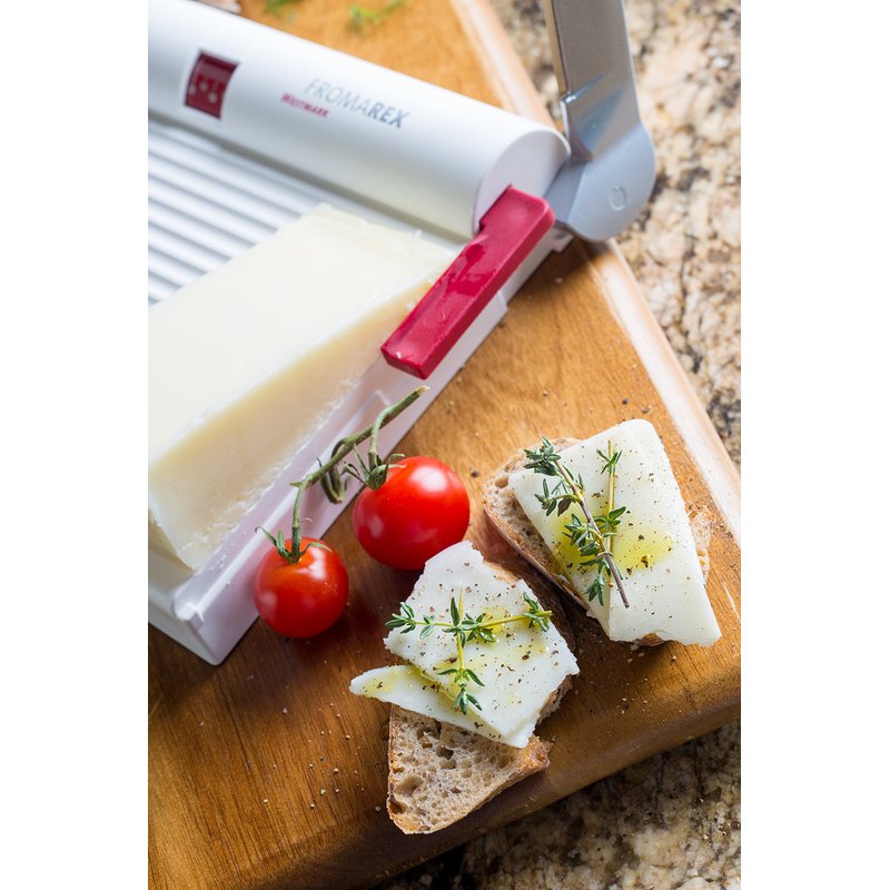 - EASY AND READY TO USE: This easy to use product slices not only your soft and hard cheeses, but can also manage other food items such as sausages, peppers, cucumbers, radishes, lettuce and much more!Equipped with an ergonomic handle and a thickness adjustable scale, Westmark’s product is efficient and comfortable to use.