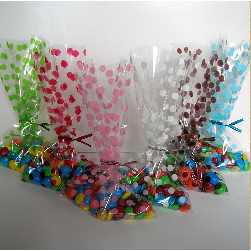 - Cello party bags:the cello bags have pink polka dots, both attractive and elegant, the twist ties is bright pink, practical and cute,the bags are airtight, the bag mouth can be tied up with the strings. It can protect your food from contaminating and going bad.