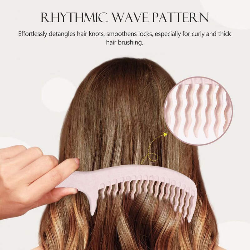 Our unique Wave Tooth Design ensures an even distribution of hair across the comb teeth, promising a seamless, snag-free detangling experience. It's time to say goodbye to split ends and unwelcome damage. This comb is a versatile tool, friendly with straight, curly, textured, thick, and wavy hair alike! It's not just a comb, it's an addition to your haircare regime that promises healthier, happier hair.