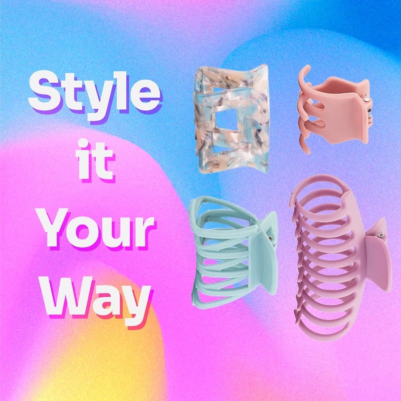 - Claw Clips: Style your hair and dress up your look while keeping your hair in place and out of your face with these stylish and versatile Claw Clips. Includes 4 claw clips.