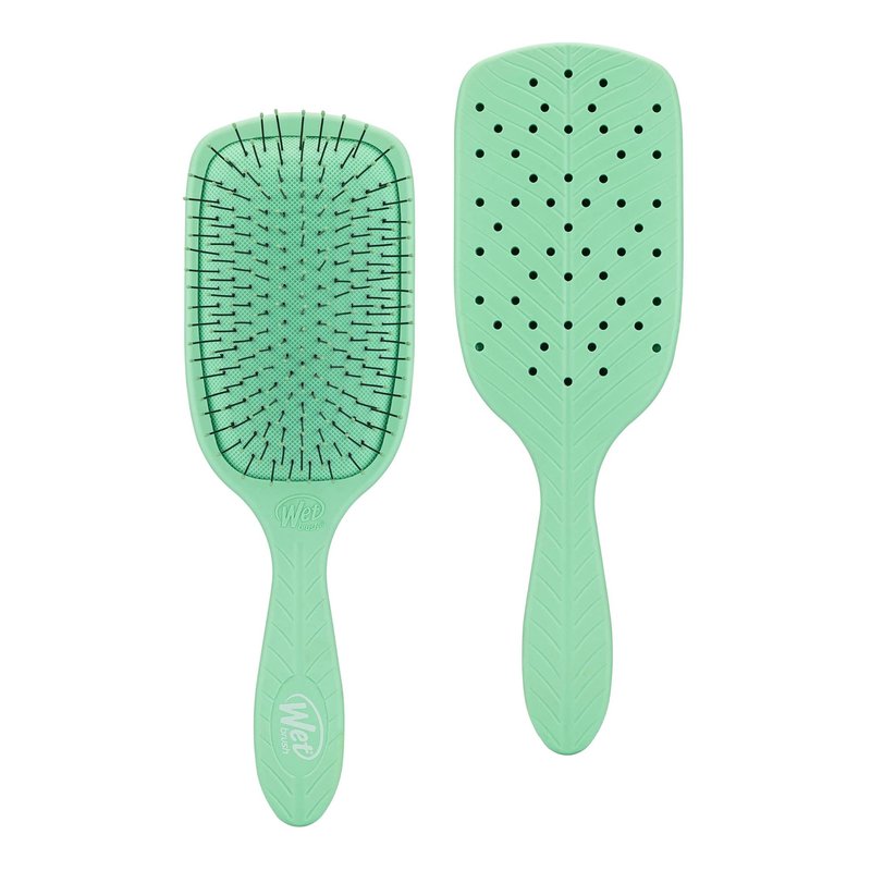 - Paddle Detangler: Specifically designed for longer hair, the Wet Brush Go Green Paddle Detangler helps strands stay strong and healthy! Gently loosens knots, on wet or dry hair, without pulling or snagging. Brush body made with 58% plant-based plastic.