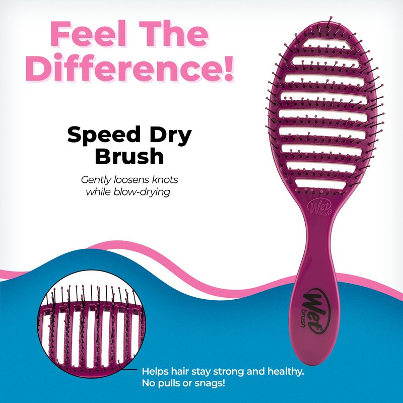 - Speed Dry: This Wet Brush Speed Dry gently loosens knots while blow-drying without pulling or snagging. This vented hair brush helps hair stay strong and healthy. The moment you use it, you'll feel the difference.
