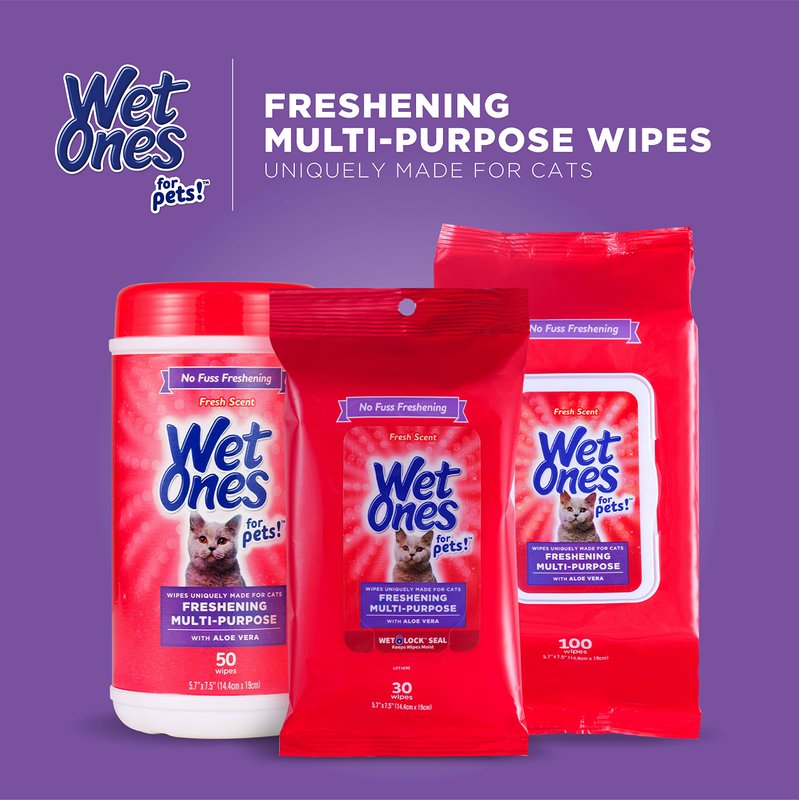 - WET ONES WIPES FOR CATS - Wet Ones hand wipes are now available for your favorite furry friends! The same team that brought you Wet Ones wipes for humans now has freshening cat wipes for multi-purpose use