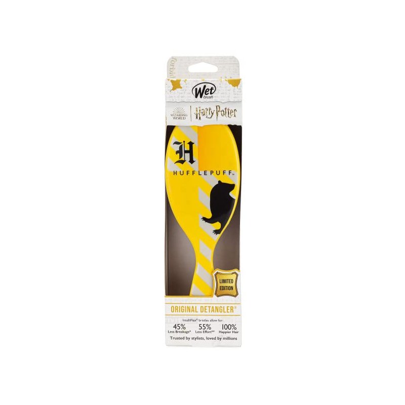Limited Edition Wizarding World. Harry Potter. Hufflepuff. IntelliFlex bristles allow for: 45% less breakage (Independent clinical trials show IntelliFlex bristles are less damaging than a traditional styling brush). 55% less effort (Independent clinical trails show IntelliFlex bristles use less force than another leading detangling brush). 100% happier hair. Trusted by stylists, loved by millions. Meet the original detangler. An award-winning brush that helps hair stay strong and healthy! The original detangler gently loosens knots, on wet or dry hair, without pulling or snagging. The moment you use it, you'll feel the difference, and never want to try another hairbrush again. Exclusive, ultra-soft IntelliFlex bristles glide through tangles on all hair types with ease. Minimizes pain and protects against split breakage (Independent clinical trials show IntelliFlex bristles are less damaging than a traditional styling brush). Lets you brush with less force, so you can detangle with less damage to your hair (Independent clinical trails show IntelliFlex bristles use less force than another leading detangling brush). Discover the full collection. wetbrush.com. Facebook. Twitter. Instagram. Pinterest. wetbrush.com. Recyclable paperboard packaging. Made in China.