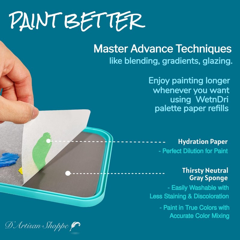 - Unique multiuse XL triple paint tray palette. Painting palette for artists, or wet pallete with 2 sponges & 50pc (Original) or 100pc (Plus) palette paper. Upgrade version gives you the ability to seal close the top and bottom trays just like any other wet palette. Middle tray remains as a paint mixing palette tray. Keeps paint blends wet with consistent values.
