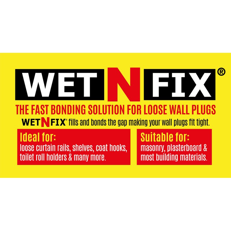 - Specifically created to solve the commonest DIY problem - securing wall plugs/anchors in weak crumbly masonry or oversized holes or fittings which have come loose with repeated use.