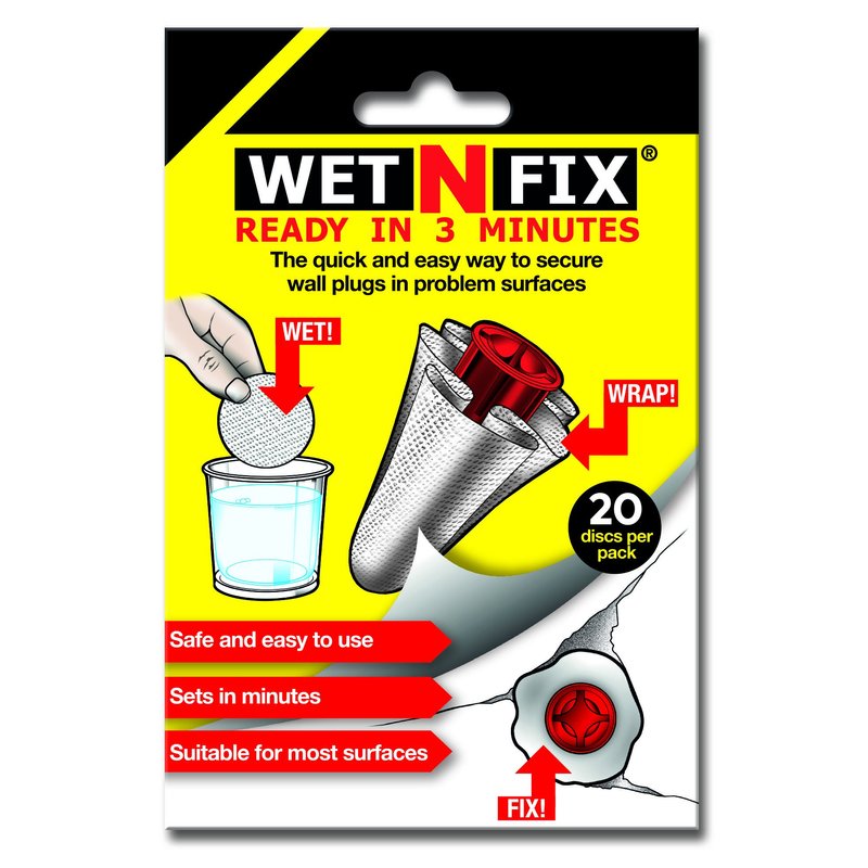 WETNFIX (20 Discs) - Fixing Wall Anchors Fast! Ideal for Loose Wall fixtures Such as Curtain Rails, Toilet roll Holders. Ideal for Drywall and Masonry.