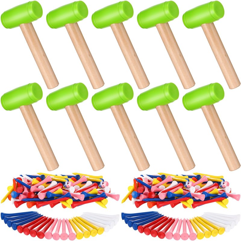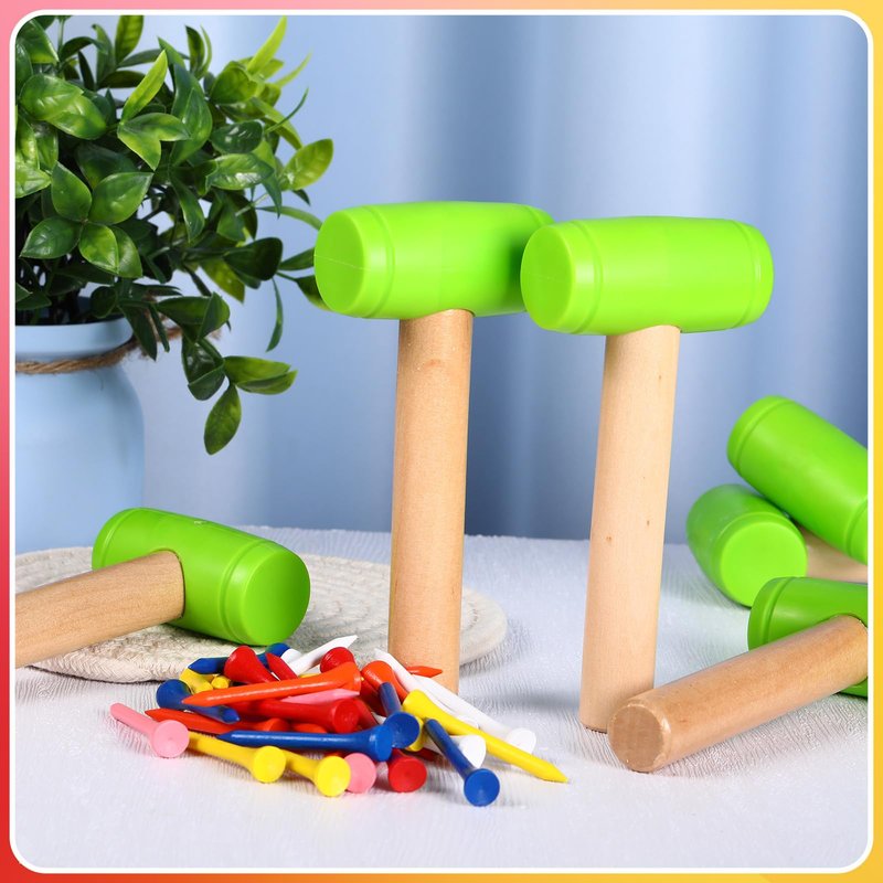 Wettarn 10 Pcs Kids Hammer Toys 100 Pcs Wood Golf Tees Small Plastic Hammer Simulation Wooden Mallet Maintenance Toy Hammer Bamboo Peg for Play Educational School Gift Halloween Party