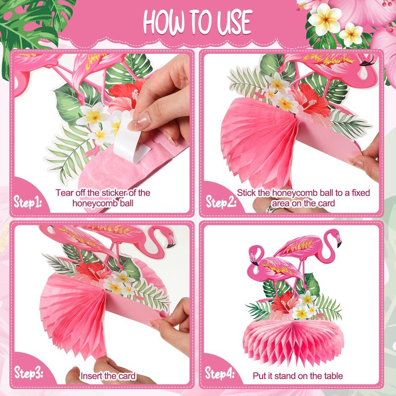 - Easy to Assemble: you need to tear the sticker off flamingo honeycomb ball, and then put it on the fixed area of the card, and put another honeycomb ball on the other side of the card, then put it on your favorite display area, which is easy to decorate your party and save you time