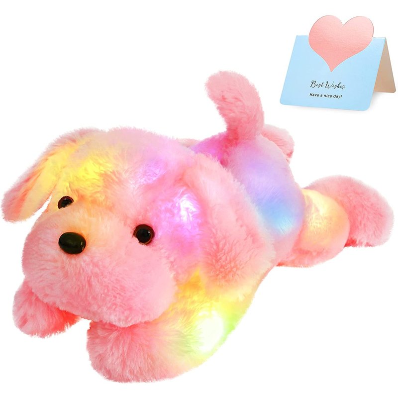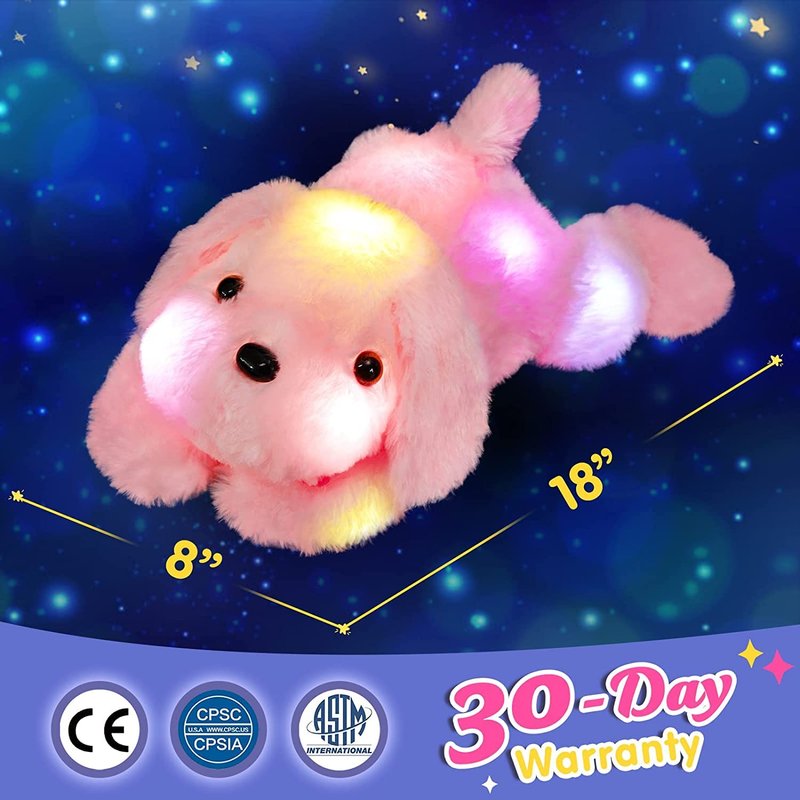 WEWILL 18'' Light up Pink Puppy Dog LED Stuffed Animal with Colorful Night Light Glow Soft Plush Toy Gifts for Kids on Christmas Birthday Valentines Day