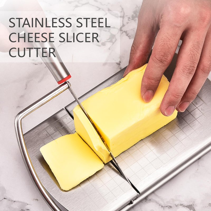 WGPG Stainless Steel Cheese Slicer Cutter, Multipurpose Cheese Slicer Food Cutter with Blade, Cheese Cutter Board Accurate Size Scale for Cutting Cheese Butter Vegetables Sausage Herbs & More
