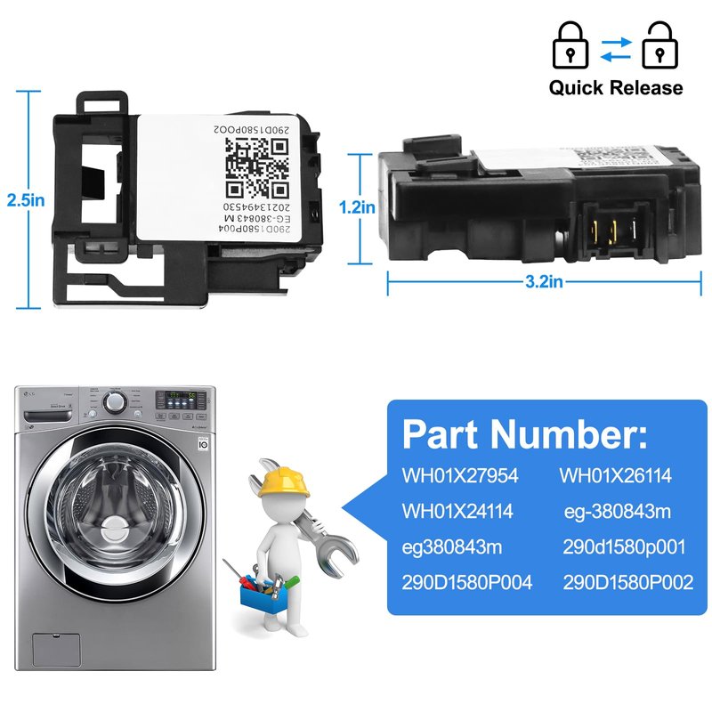 - ✅【WH01X27954 Washer Lid Lock Switch Replaces Part Number】WH01X27954,WH01X26114 WH01X24114 eg-380843m eg380843m 290d1580p001 290D1580P004,290D1580P002,Compatible with GE top Load Washer.Easy to install,saves time and money.【NOTE: Please confirm the model and product appearance before purchasing.】
