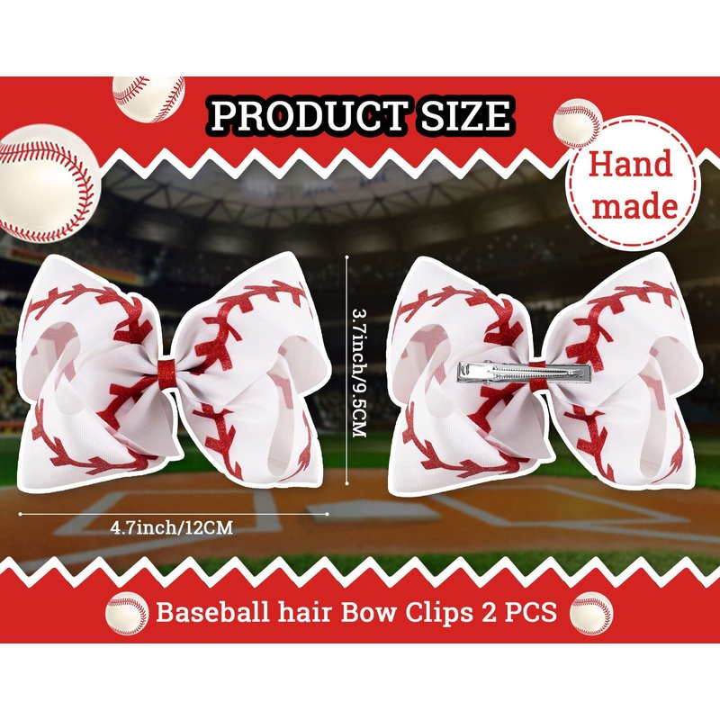 - Package Includes - 2pcs baseball cheerleading hair clips in white and red color, sufficient for you to spare or replacement, meeting your different holiday dressing needs.