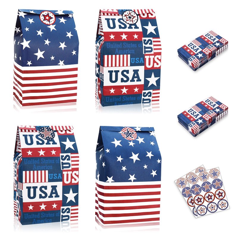 - Package Includes – 36pcs 4th of July treat bags with 2 different designs,18 bags of each design, enough to meet your needs for various sized parties, with 36pcs round stickers for sealing the candy bags.