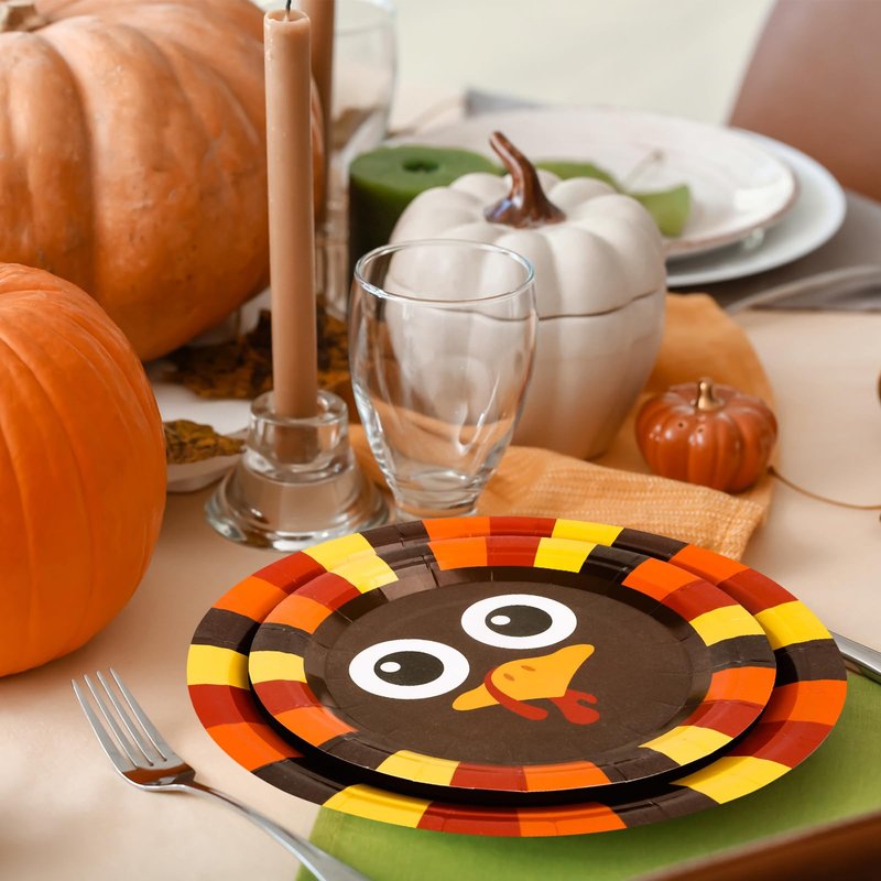 - Cute Design - Patterned with turkey expression in the middle of plates, bordered with classic fall colors, adorable and exquisite, quite suitable for thanksgiving party supplies.