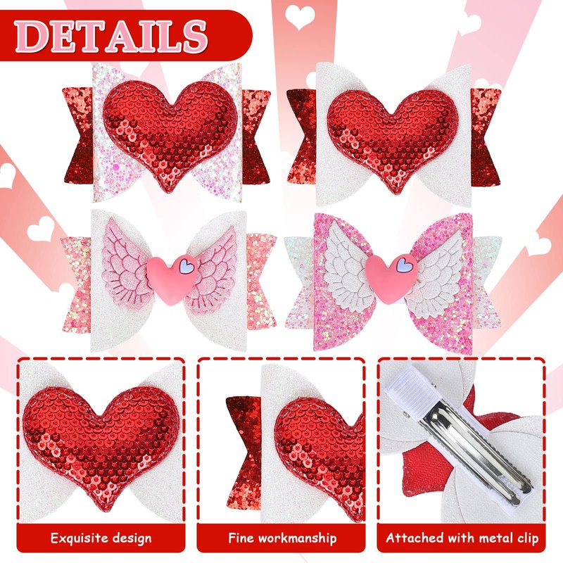- What You Will Get - 4pcs Valentine's Day bow hair clips are included in the package, assorted designs make them beautiful hair accessories for girls and women.