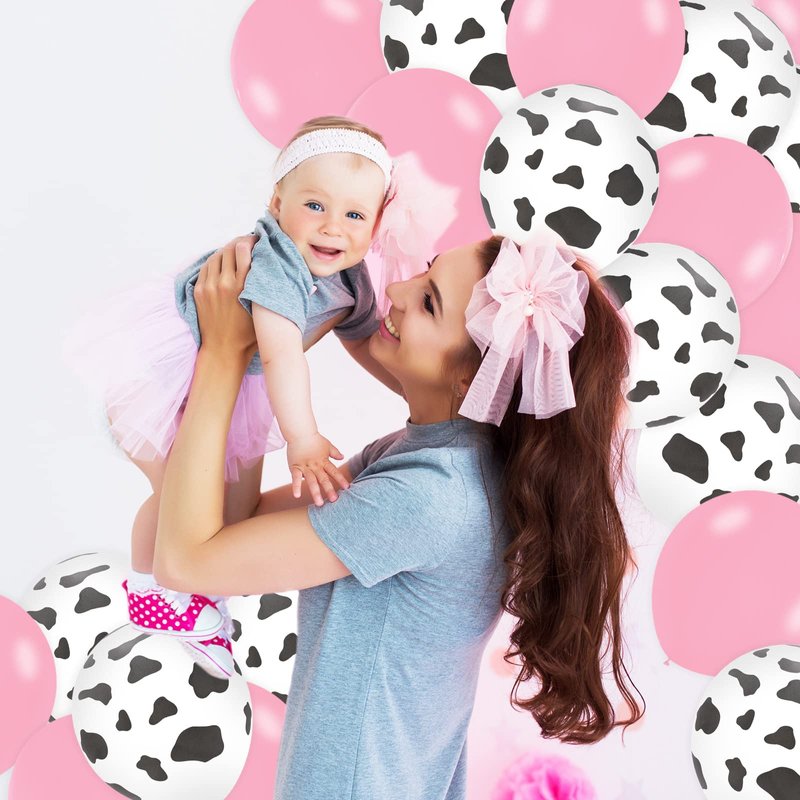 - What You Will Get - 50pcs cow balloons in 2 designs and 2 rolls ribbon in pink and white are included in the package, sufficient to meet your needs for party or home decoration.