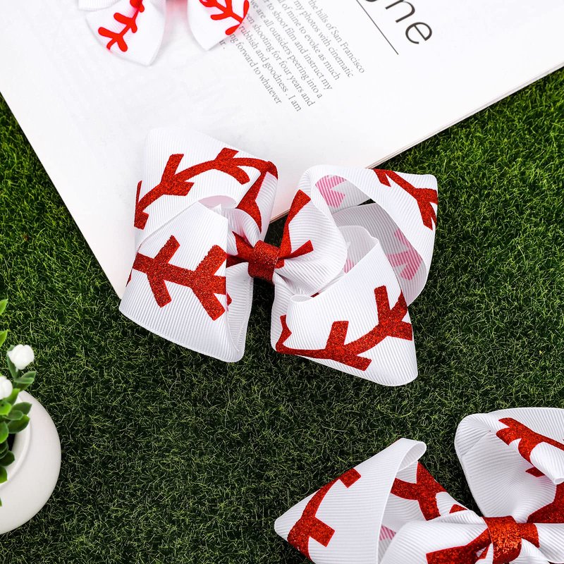 - Package Includes - 6pcs baseball cheerleading hair clips in white and red color, sufficient for you to spare or replacement, meeting your different holiday dressing needs.