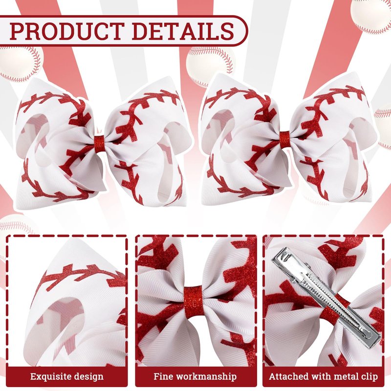 - Cute Design - The baseball hair clips are designed with red and white color, vivid pattern, and cute bow shape, giving girls a gentle and lovely image and raising people’s interest in sports meeting.