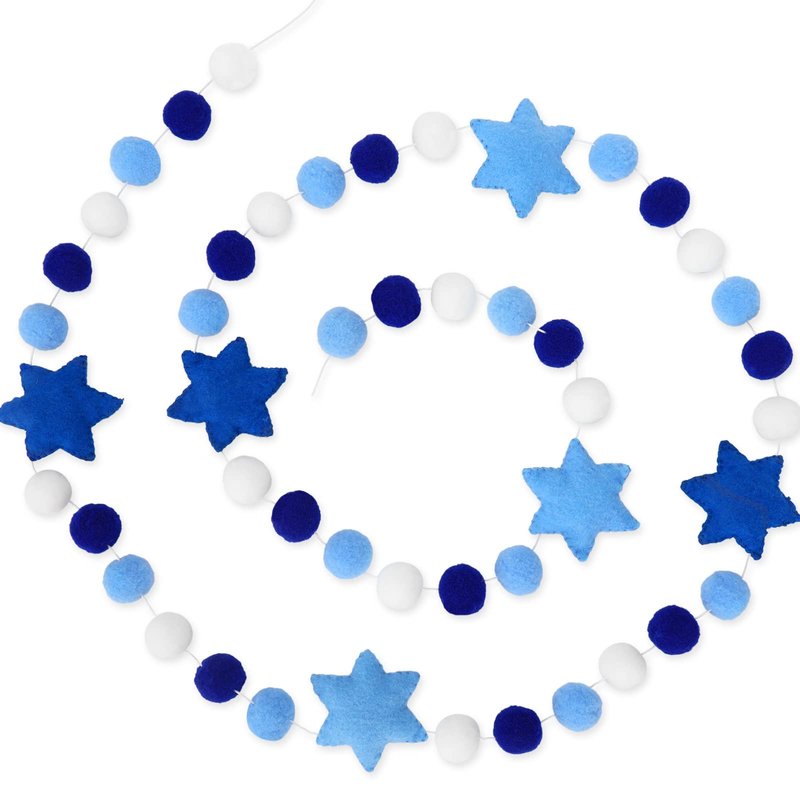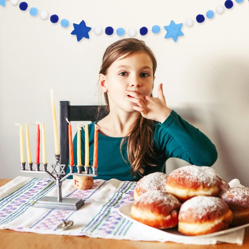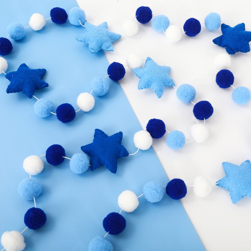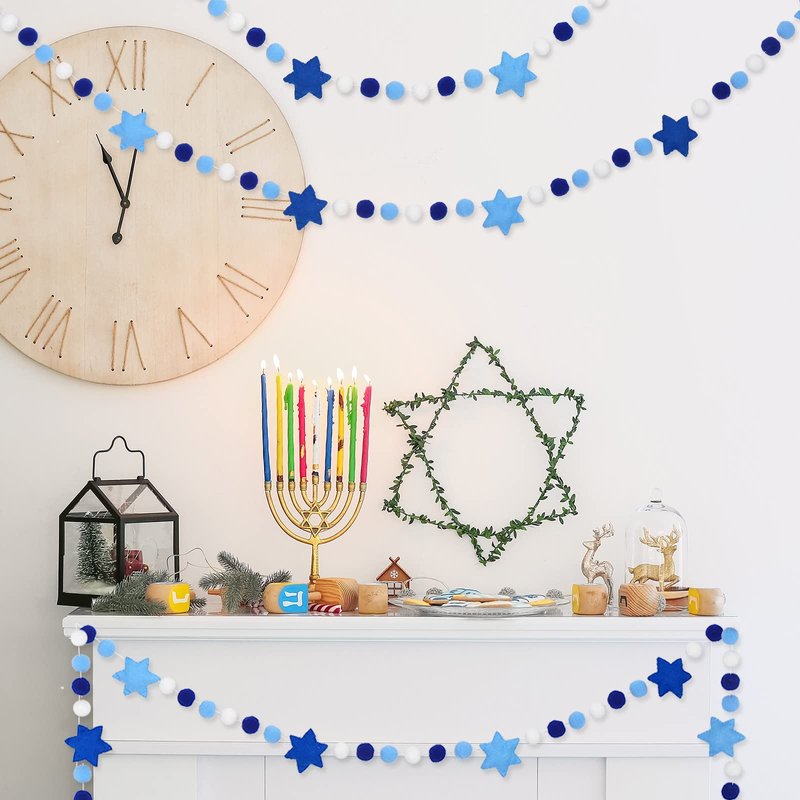 Taking blue and white as theme colors, designed with Hexagram and pompom balls, festive and delicate, great decoration for Hanukkah.