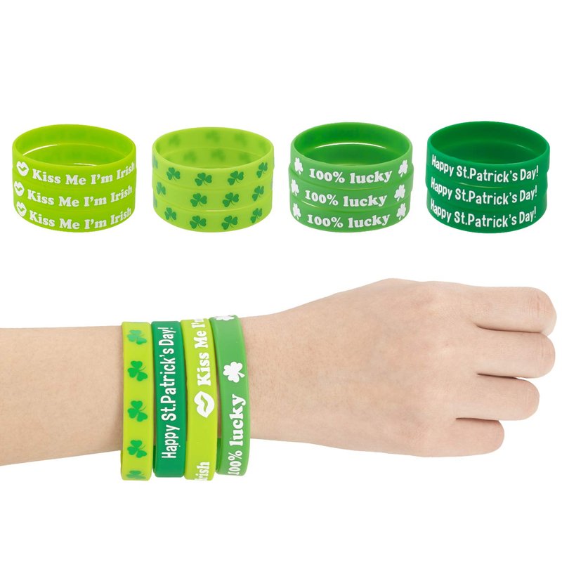 - 12 Pieces shamrock wristbands bracelets – 12 pieces in 4 styles, each style contains 2 packs, the diameter of the wristbands measures 6.5cm / 2.5in, printed with different patterns and words, adorable and suitable for teens and adult