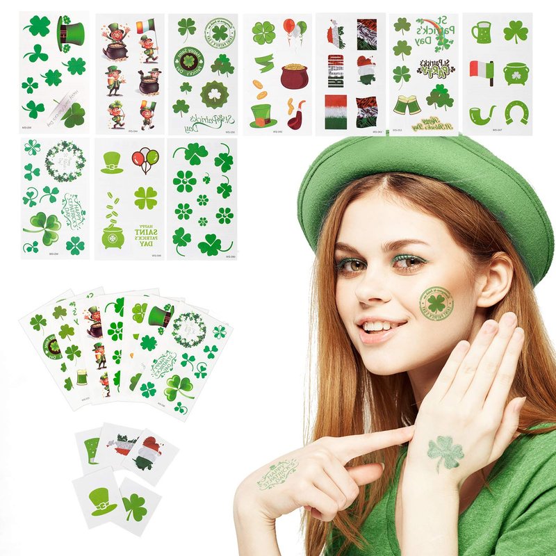 70Pieces St. Patrick's Day temporary tattoos is comes with 10 sheets in about 70 patterns designs.