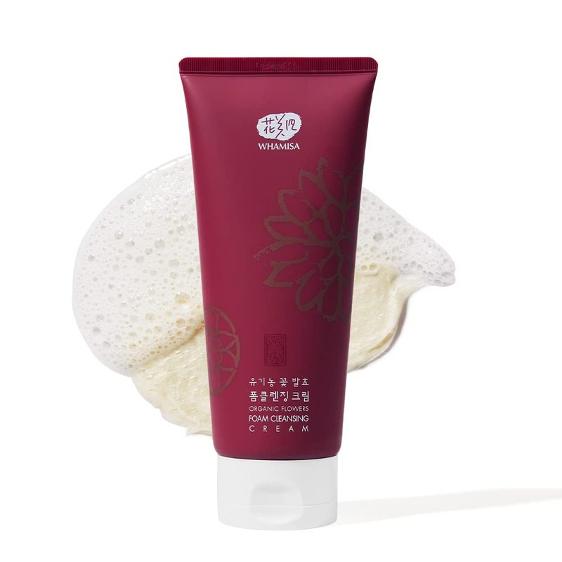 Whamisa Organic Flowers Foam Cleansing Cream, Natural, Fermented, Hydrating, Soothing, Exfoliating, Removes Impurities, Even Skin, Residue-free, 6.7 Fl. Oz / 200ml