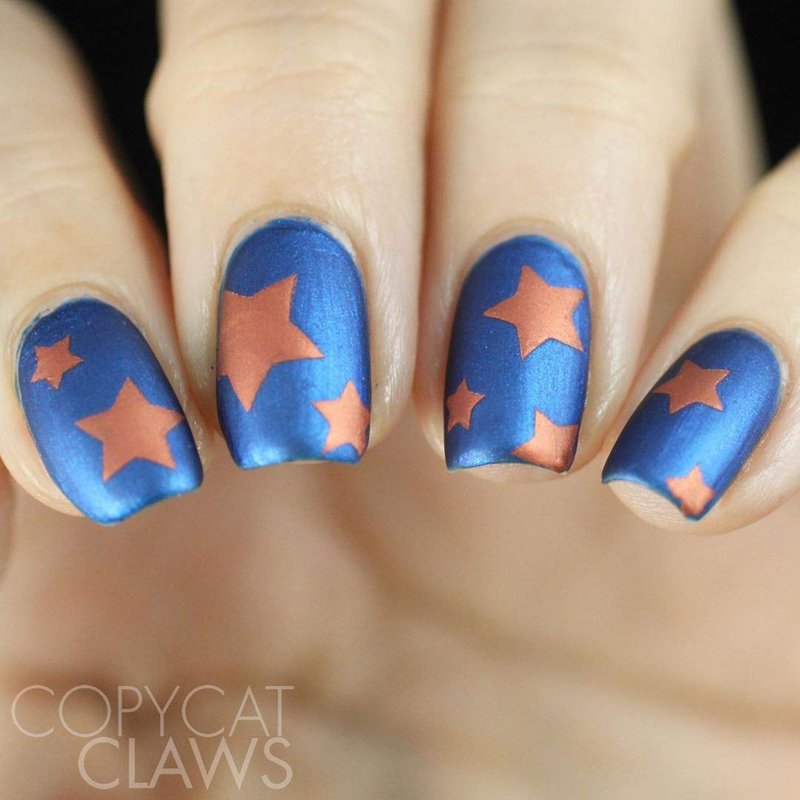 - Apply fresh or thinned, not thick or gloopy, nail polish across the tape/stencil. Shimmer and metallic nail polishes work better than cremes. We recommend applying nail polish with a sponge lightly pushing it to your nail, similar to ombre design, this prevents any polish bleeding under the stencil giving cleaner lines. Remove extra nail polish from your skin and cuticles by using a flat brush dipped in acetone or nail polish remover.
