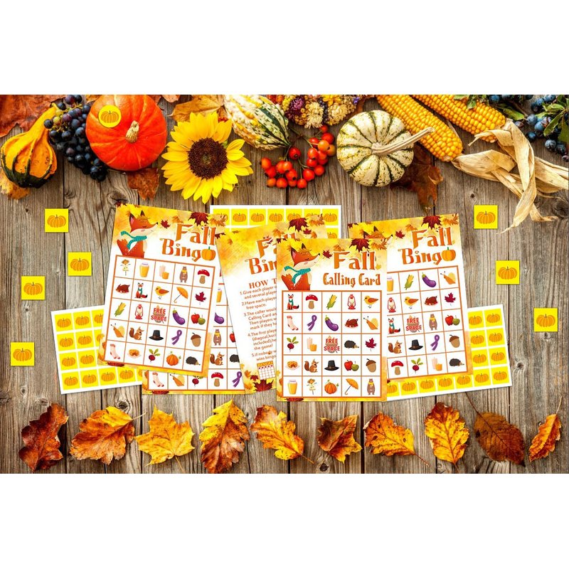 - 【Autumn Bingo Game Cards Set】:Package includes 26 sheets fall festival bingo player cards, 26 sheets 728pcs bingo pumpkin cards, 1 calling card and game instructions cards.