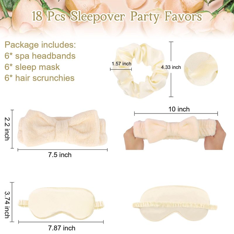 - 【Perfect Party Favors】This set includes 6* Spa Makeup Headbands, 6* Eye Mask for Sleeping and 6* Stain Hair Scrunchies, ideal favors for a memorable party. Your friends will love receiving these cute spa headband and sleep mask.