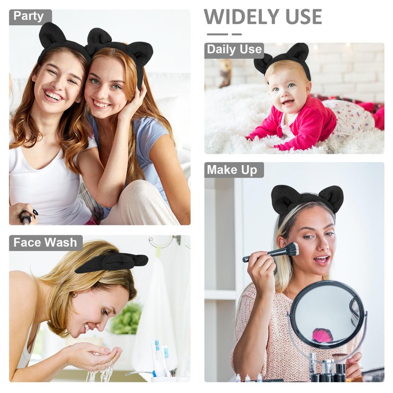 - 【Cat Ears Design】Adorable cat ears are designed on the top of headband, which makes you extraordinary sweet and cute. Perfect for any occasion, like party, cosplay events, Halloween, or daily use. The cat headband also works effectively to keep your hair during your cleansing process.