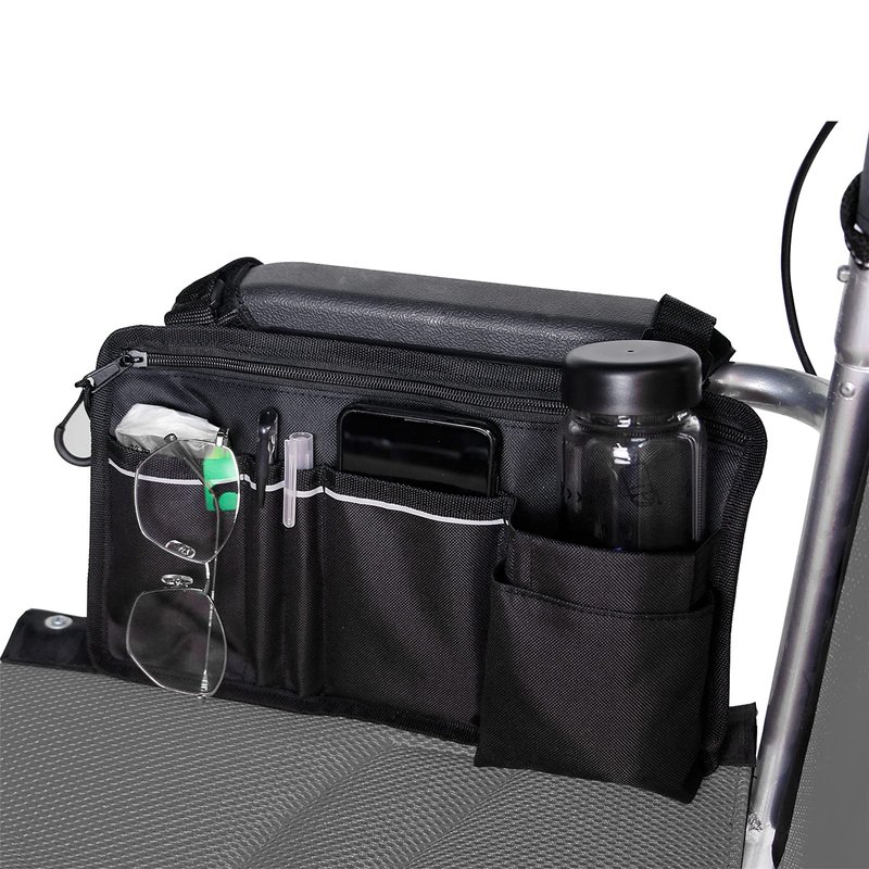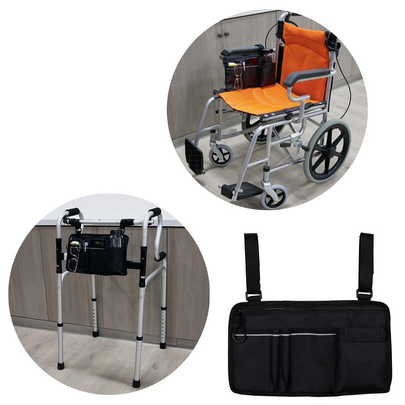 - Large capacity: Design with functionality in mind-inside and outside double-sided pocket design. Inside the mesh pocket, on the outside we designed multiple small pockets to store small items. Compared with other wheelchair bags, the wheelchair side bag provides more storage space.