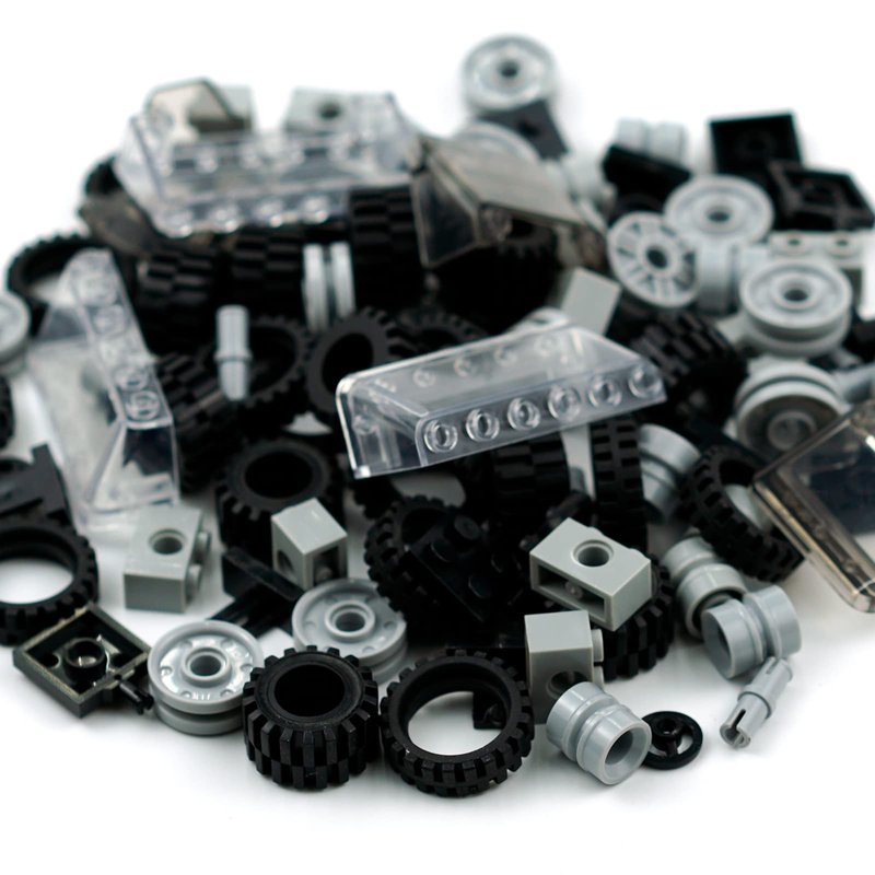 Include Steering wheels, windshields, chassis, tires, wheels and axles pieces, totally 102pcs car parts and pieces.