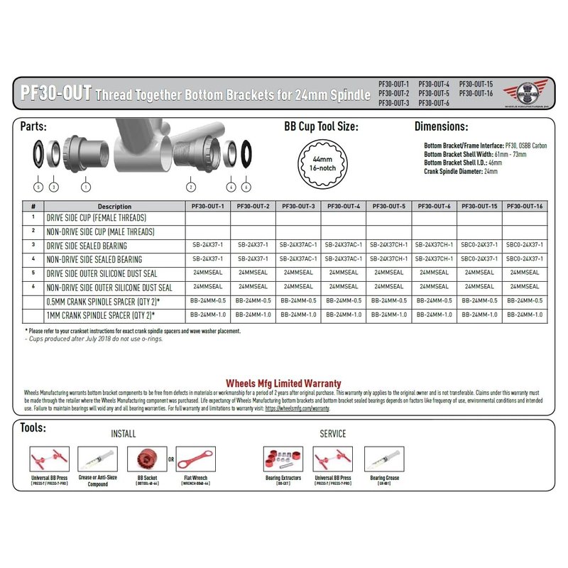 Wheels Manufacturing Press Fit 30 to Outboard Bottom Bracket with ABEC 3 Bearings, Black, Shimano 24mm Spindle