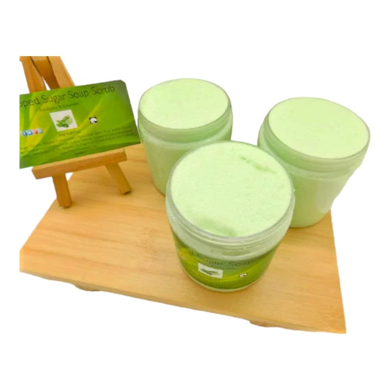 Our Whipped Sugar Soap Scrub is a fluffy, foaming cleansing soap whipped with organic pure cane sugar and skin-loving oils for gentle exfoliation, which your skin will thank you for. This product contains oils that may make your tub slippery. All our items are Made in Alaska. ● QUANTITY: Listing is for ONE 6.5 oz jar ● INGREDIENTS: Sugar, Avocado Oil, Glycerin, Sorbitol, Purified Water, Myristic Acid, Stearic Acid, Sodium Cocoyl Isethionate, Disodium Lauryl Sulfosuccinate, Sodium Chloride, Diazolidinyl Urea, Iodopropynyl Butylcarbamate, Tetrasodium EDTA, Fragrance Oil, Optiphen ( Preservative) ● PLEASE NOTE: Each jar is unique, and your jar may not look exactly like what is pictured but does contain the exact high-quality ingredients and scent. Best used within 6 months of purchase. ● Directions for use: Apply to dry or wet skin, rub in a circular motion, then rinse. If you have any questions or concerns about our products or service, please contact us to resolve the issue.