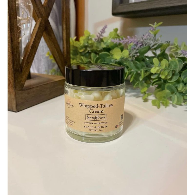 SkinBiome's Whipped Tallow Cream is a nourishing whole- food cream for your skin. This cream is full of natural fats, vitamins and minerals such as vitamin A, D, E, K and B1. It absorbs quickly into the skin for an intense hydration that will help prevent transepidermal water loss. Transepidermal water loss causes skin dehydration, skin flaking, rough lines and premature wrinkles. Whipped Tallow cream can be used on the face and the entire body. It is also safe for pregnancy and the tiniest of babies. This cream leaves your skin plump, glowing, refreshed and evenly toned with intense moisture without feeling greasy. 100% Organic grass-fed tallow, delicately whipped to a silky smooth texture and piped by hand into jars. *** There may be small gaps of air in the jar*** Jars are filled by volume. Organic ingredients: grass-fed tallow, organic olive oil, organic essential oils Size: 5 oz glass jars