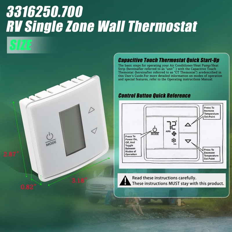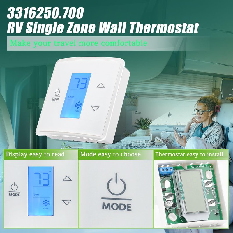 - High Quality: The CT Thermostat is made of premium material and well-tested by the manufacturer, precisely regulate your AC or heating system to maintain a comfortable temperature range while avoiding unnecessary energy waste. Dometic technology puts total RV climate control at your fingertips. The Single Zone LCD Thermostat operates automatically or manually and makes comfort and control come together in one superb package.