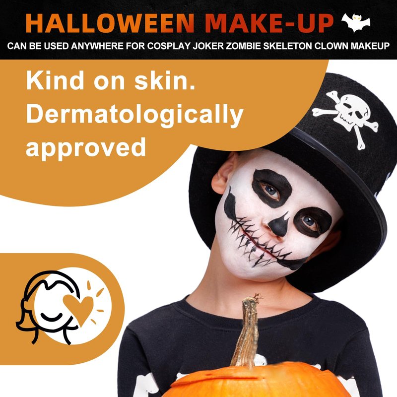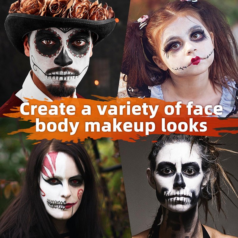 White Black face paint For Halloween parties, carnivals, themed costumes, stage shows and any occasion where you want to make a dramatic entrance and stand out from the crowd SFX Stage Makeup,Zombie Skeleton Makeup, Joker Clown Makeup, Goths Makeup,Skeleton Skull Makeup, Halloween Makeup, Vampire Makeup