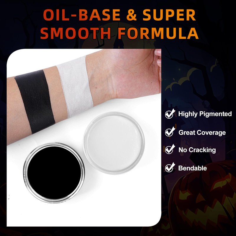 - Wide Usage --- High pigment classic black white face body paint can use for face and body. Fit for sports events, festivals,fancy ball, parties, club,photoshoot,Goths, vampires, clowns, mimes, zombies,skull,skeleton,superhero designs,Halloween Costume theme,etc