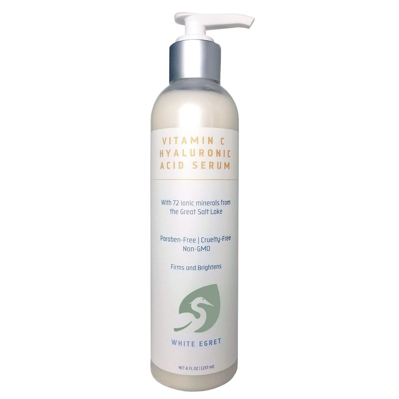 White Egret Hyaluronic Acid with Vitamin C, 72 Ionic Minerals from The Great Salt Lake for Firming, and brightening Skin, 8 fl. Oz