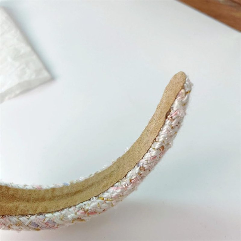 White Fashion Tweed Plaid Headbands Hairband Women Gold Thread Sequin Decoration Sponge Wide Head Hoop