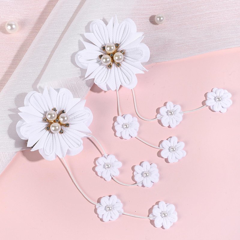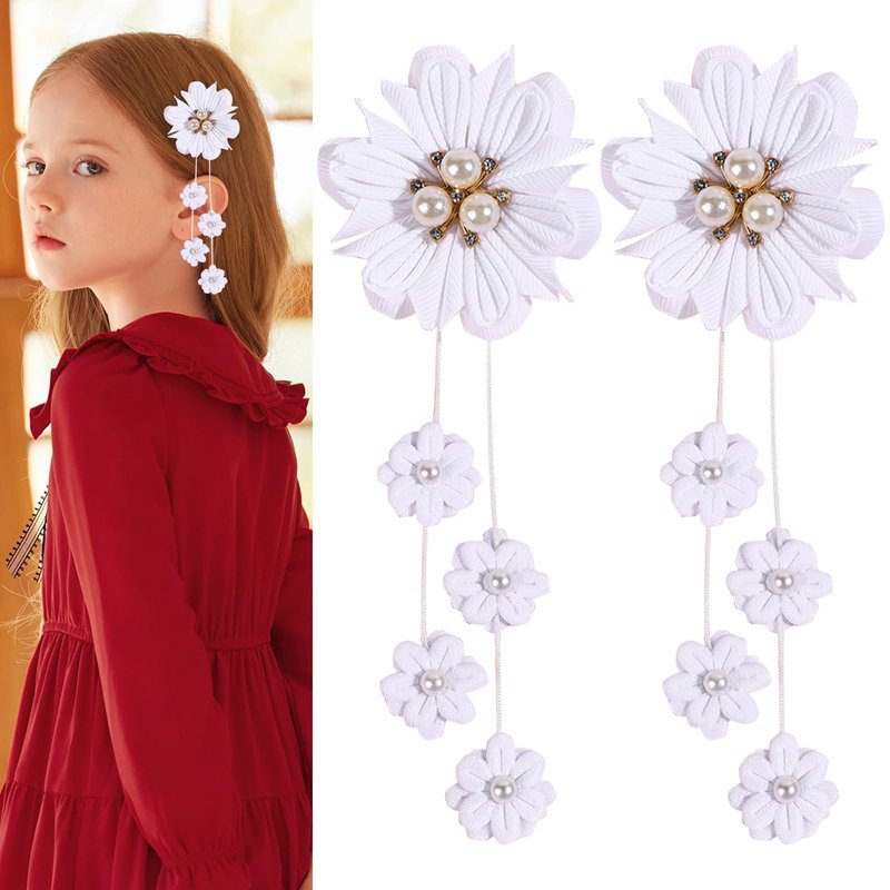 White Flower Hair Clips Cute Flower Tassels Hair Clip White Pearl Jewel Hairgrips Design Fashion Floral Girl Bow Alligator Clips Hair Decoration for Women Girl 2Pcs (White flower Tassels)