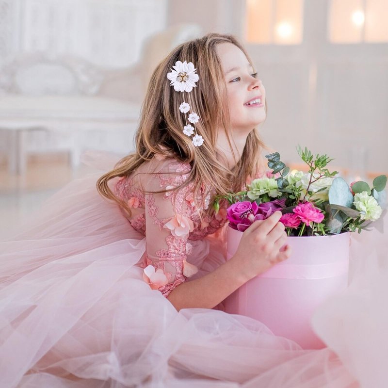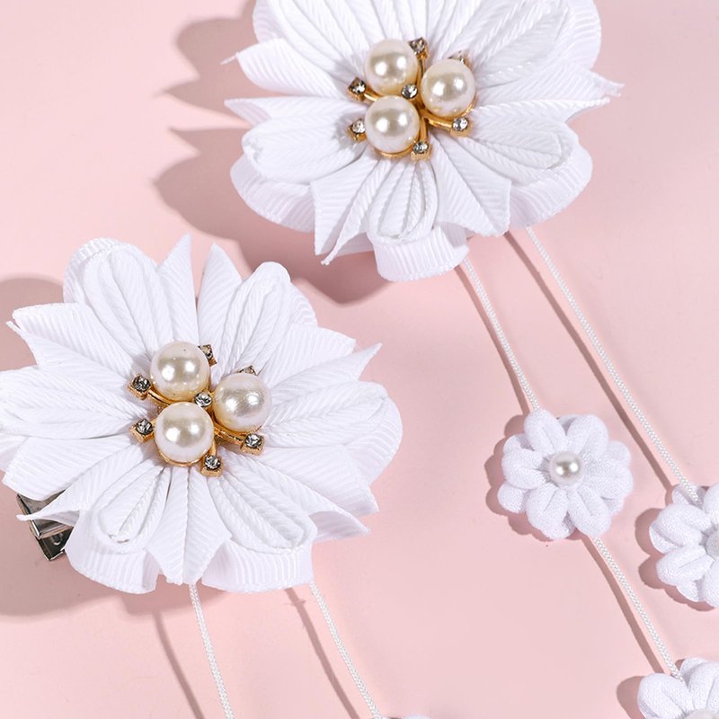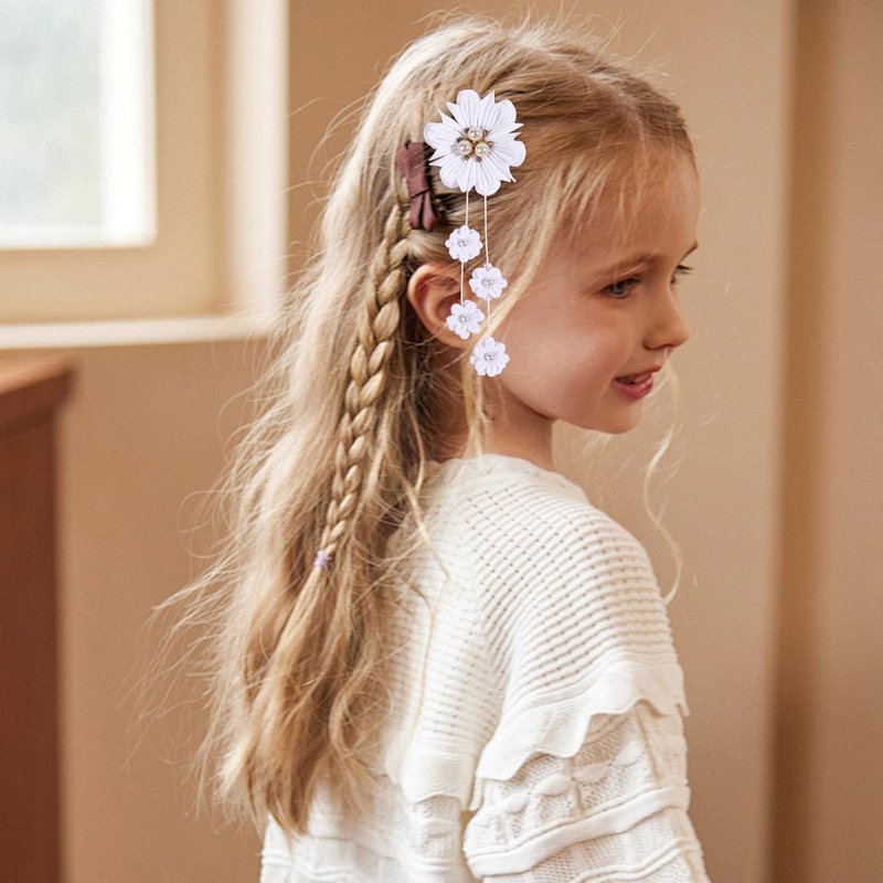 - Tassel Design:This hair clip is very elegant, featuring a white floral design with two tassels adorned with pearls and diamonds, making it look more delicate and cute. The tassel design makes the hair clip look more distinctive.
