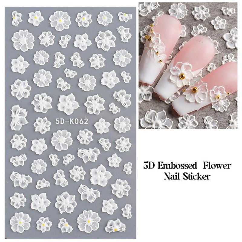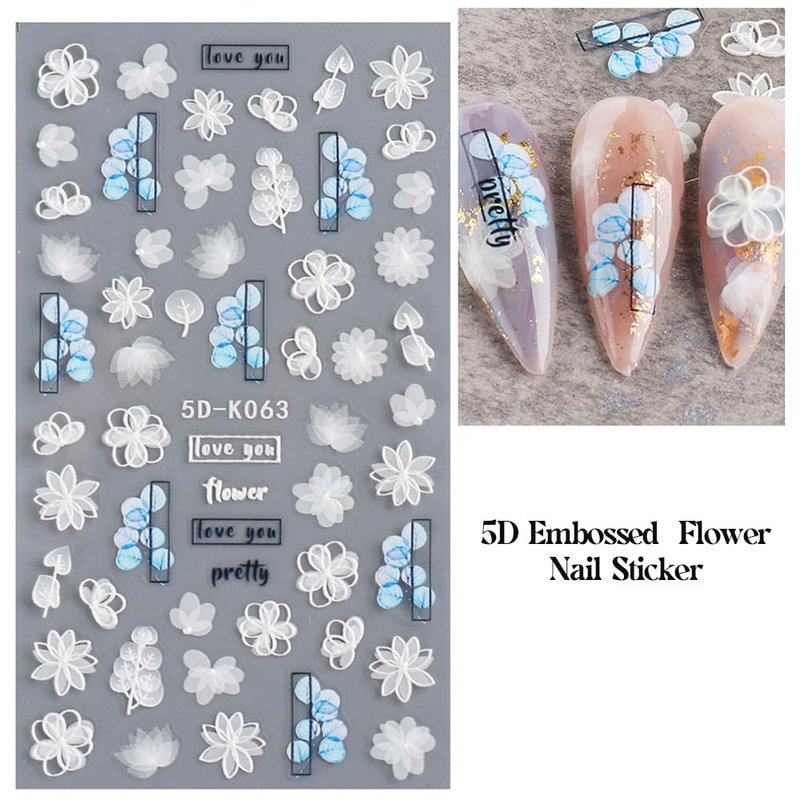 - [Exquisite design] The embossed carved flower pattern on 5D nail art gives an intuitive and delicate delicate feeling. White lace flowers, pink cherry blossoms, white feathers, peony flowers, butterflies and many other patterns are available for the fashionable style of teenage women.