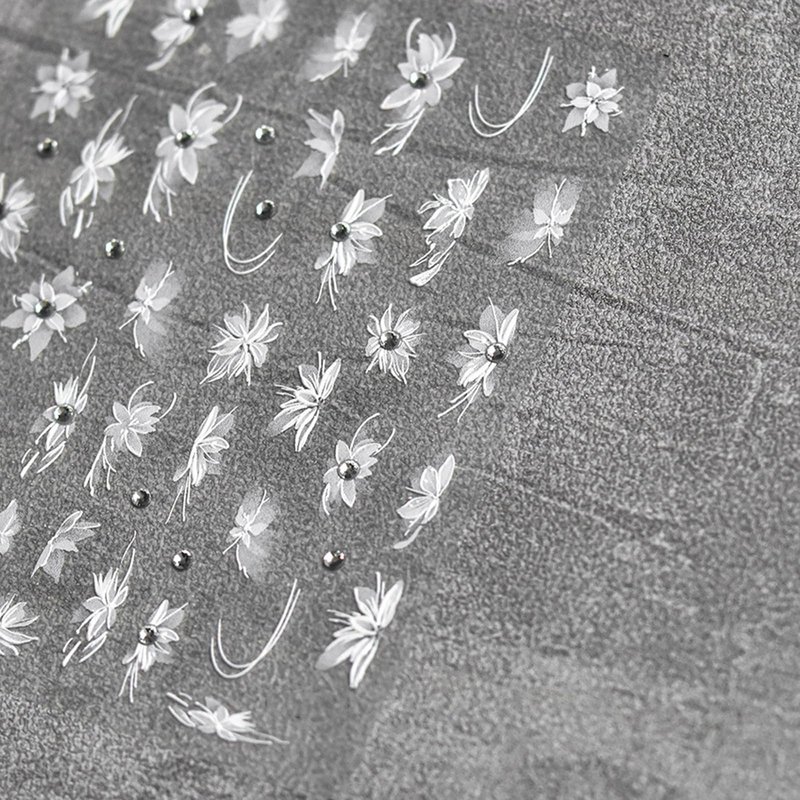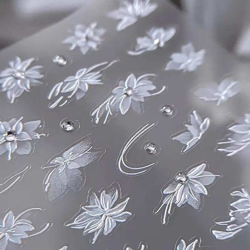 White Flower Nail Art Stickers Decals 5D Embossed Nail Decals Self Adhesive Diamond Flower Nails Stickers Spring Flower Nails Transfer Decals Floral Nails Supplies for Women Nail Art Decorations 1pc