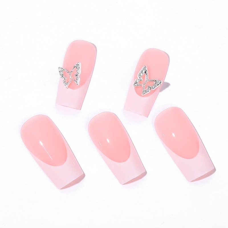 White French Press on Nails Medium & Press on Toenails Set - Square Fake Nails Press ons Nail Art Tips Glue on Nails Full Cover Short False Toe Nails with Butterfly Charms Design Acrylic Nail Kit