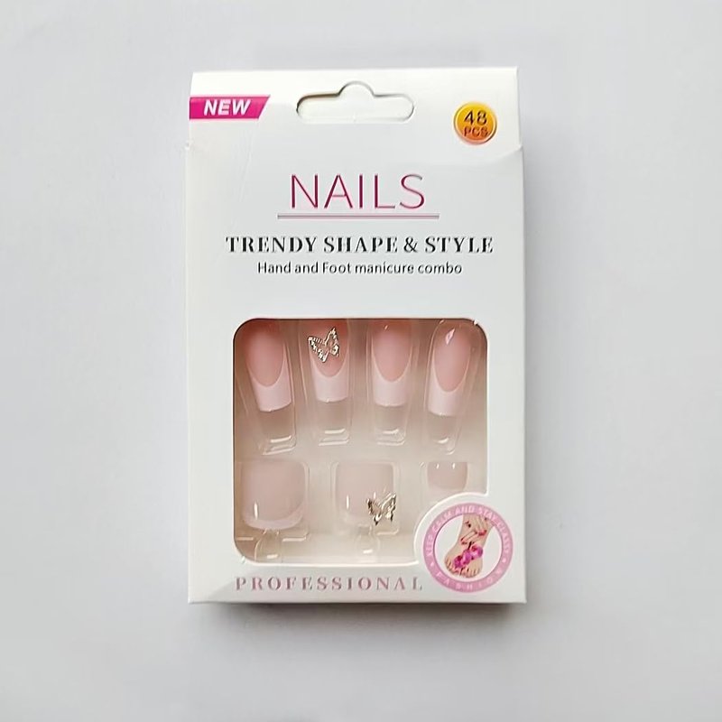 False nail set and toe nail set 1 set each combination/(2 sets); Our press nail kit includes 24 pcs of false nails in 12 different sizes, an orange wooden stick, a pack of cleaning cotton, everything you need for DIY nail art.