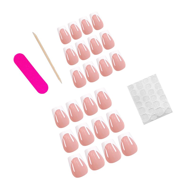 - Package Contains: You will get 24 pieces white french tip false nails in 12 sizes,1 piece nail file, 1 piece nail double-side stickers, 1pcs wooden stick for removing nails tips. Unique fashion design, make you more sweet and charming.