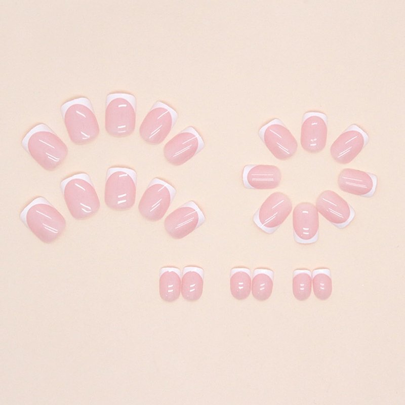 White French Tip Press on Nails Short Square Fake Nails Glossy Pink False Nails with Glue on Nails Reusable Full Cover Stick on Nails Acrylic Artificial Nails for Women DIY Nails Art Decoration