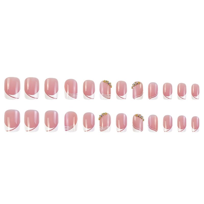 White French Tip Press on Nails Short Square Fake Nails Pink Acrylic Nails Press on With Rhinestones White Nail Tips Apricot Design Glue on Nails Reusable False Nails for Women 24pcs